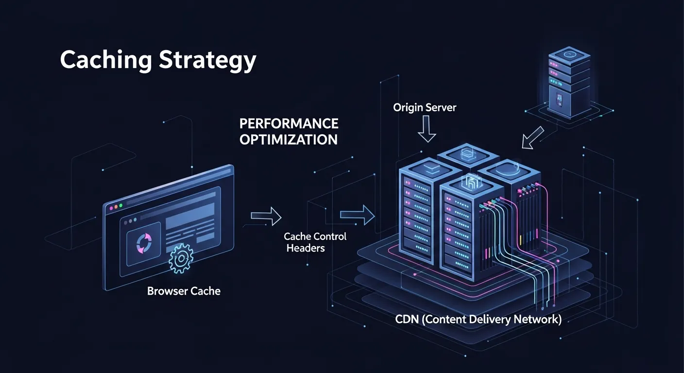 Cachování ukládá kopie zdrojů blíže k uživateli, což dramaticky snižuje dobu načítání pro opakované návštěvníky. Efektivní cachování může snížit zátěž serveru o 50-80 %.
